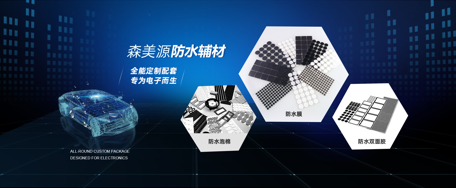 森美源18年專注防水輔料,深諳手機、對講機、耳機、家電、筆記本電腦、移動通訊、工業設備、電子控制器、機箱機殼等電子產品防水需求,為客戶定制解決,輔料選擇難、使用難、報價難的困擾,提供一站式服務。