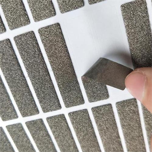 屏蔽模切成型的主要工藝過程為:上刀模→放底板→調整壓力→試壓模切→定位→正式模切成型→清除廢料→成品檢查→點數包裝